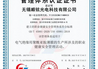 無錫順鉉光電職業健康安全管理體系認證證書(S)